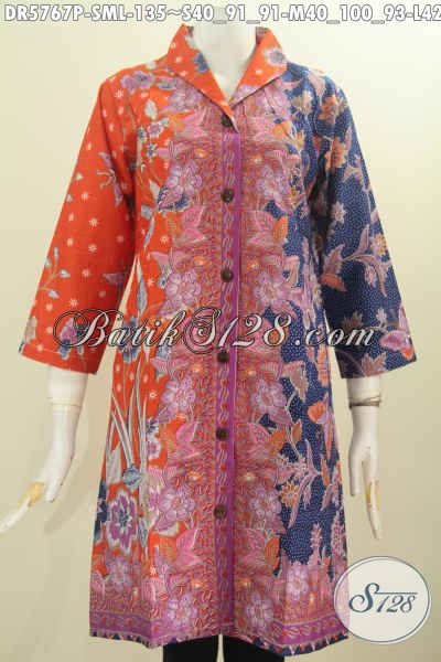 Pusat Belanja Batik Online Terlengkap, Sedia Dress Batik Kerah Langsung Asli Solo Motif Pagi Sore Proses Printing Harga 135, Cocok Buat Kerja Wanita Karir [DR5767P-S , M , L]