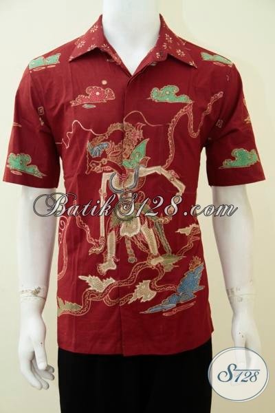 Pusat Belanja Busana Batik Online Lengkap Di Solo Sedia Hem Batik Wayang Warna Merah Motif Gatotkaca Cowok Banget Mas Bro, Baju Batik Tulis Halus Adem Membuat Pria Tampil Gagah Berwibawa [LD2709T-L]