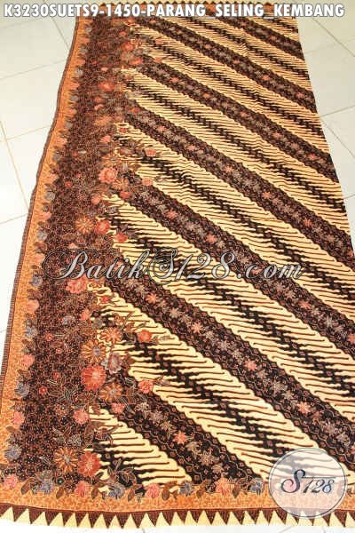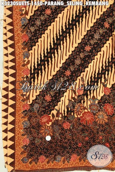 Pusat Belanja Online Kain Batik Premium, Sedia Batik Tulis Soga Bahan Sutra Crepe Mewah, Batik Klasik Halus Motif Parang Seling Kembang Untuk Busana Formal Istimewa [K3230SUETS-240cmx110cm]