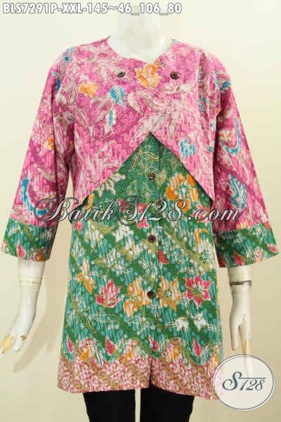Pusat Belanja Pakaian Batik Paling Up To Date, Sedia Blus Big Size Wanita Gemuk Model Kombinasi Rompi Sambung Kwalitas Istimewa Harga Biasa [BLS7291P-XXL]