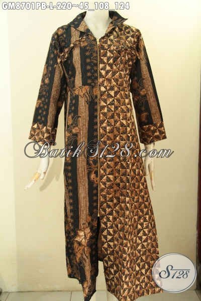 Pusat Busana Batik Online, Sedia Gamis Batik Motif Kombinasi Desain Mewah Dengan Resleting Depan Menunjang Penampilan Cantik Menawan [GM8701PB-L]