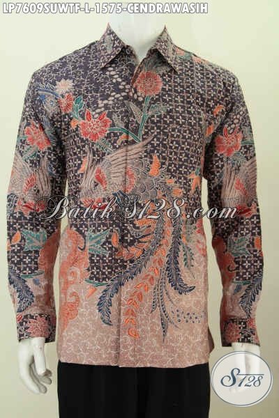 Pusat Busana Batik Pria Premium, Jual Online Kemeja Batik Sutra MOtif Bagus Tulis Tangan Asli Model Lengan Panjang Pake Furing Harga 1.5 Jutaan [LP7609SUWTF-L]