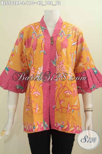 Pusat Busana Batik Solo Online, Sedia Blus Lengan Balon Warna Kuning Dengan Aksen Merah Nan Modis Dan Berkelas, Bahan Halus Proses Printing Cocok Buat Santai [BLS5028P-L]