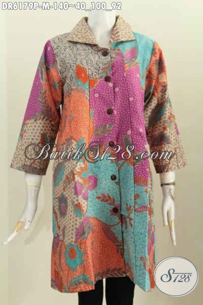 Pusat Online Busana Batik Solo, Sedia Dress Kerah Kotak Kwalitas Bagus Hanya 100 Ribuan, Bahan Adem Motif Istimewa Proses Printing [DR6179P-M]