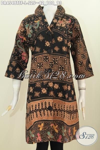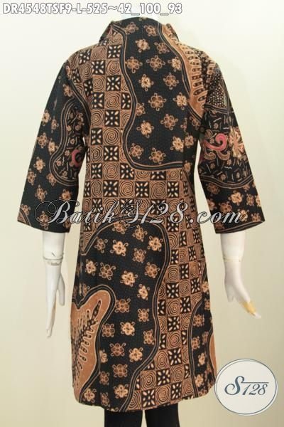 Pusat Pakaian Batik Premium Solo Sedia Dress Batik Mewah Model Kerah Kangsung Berbahan Halus Dan Adem Motif Terkini Proses Tulis Soga Daleman Full Furing Tampil Makin Berkelas [DR4548TSF-L]