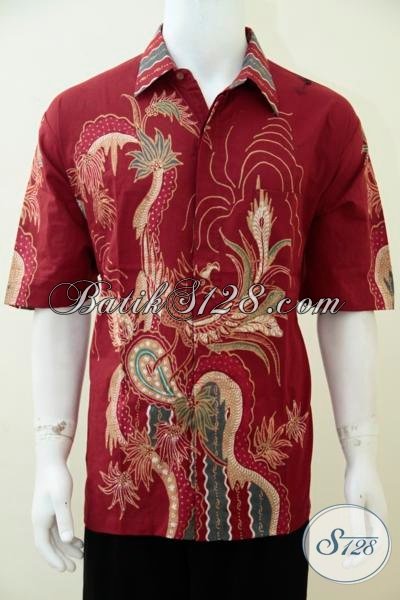Pusat Penjualan Kemeja Batik Tulis Solo Online, Sedia Hem Batik Merah Modis Untuk Pesta Dan Trendy Untuk Acara Resmi [LD2456T-XL]