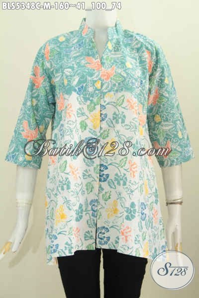 Pusat Update Fashion Batik Solo Online, Sedia Blus Kerah Shanghai Hijau Motif Bagus Proses Cap Untuk Wanita Muda Tampil Lebih Gaya [BLS5348C-M]