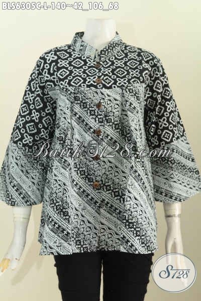 Pusat Upgrade Fashion Batik Online, Jual Blus Kerah Shanghai Keren Monokrom Motif Terkini Proses Cap Hanya 140 Ribu [BLS6305C-L]