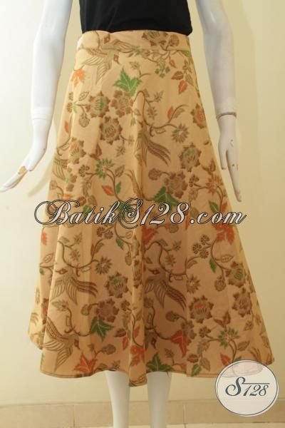 Rok Batik Modern Warna Coklat Muda, Busana Batik Bawahan Untuk Perempuan Muda Dan Remaja Putri Proses Printing Motif Bunga [R2992PL-All Size]