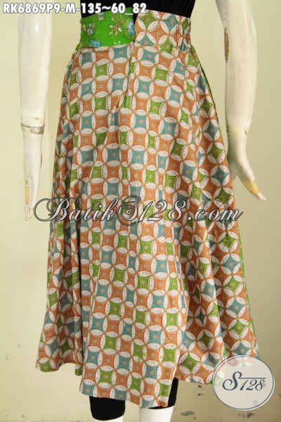 Rok Klok Batik Warna Hijau Motif Bagus Proses Printing Modis Buat Santai, Baju Bawahan Batik Pake Karet Pinggang Dan Resleting Asli Buatan Solo [RK6869P-M]