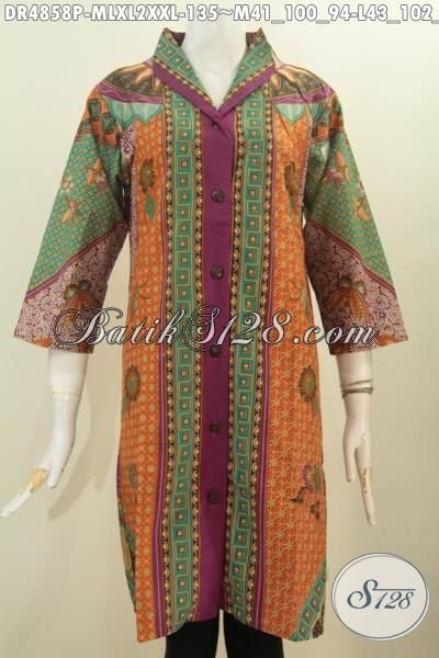 Sedia Aneka Pakaian Batik Wanita Muda Dan Dewasa, Produk Terkini Dress Batik Kerah Langsung Motif Klasik Proses Printing Bikin Penampilan Terluhat Elegan Dan Mewah [DR4858P-XL]