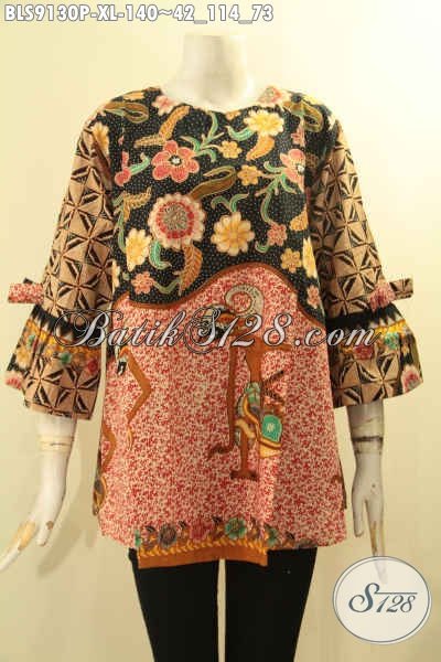 Sedia Baju Batik Blouse Tanpa Kerah Lengan 3/4 Berpita, Busana Batik Modern Kwalitas Istimewa Motif Tren Masa Kini Jenis Printing, Penampilan Lebih Cantik Dan Anggun [BLS9130P-XL]
