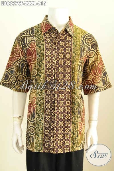 Sedia Baju Batik Casual Untuk Pria Ukuran 4L, Hem Batik Cap Tulis Motif Kombinasi Model Lengan Pendek Desain Terbaru Tampil Lebih Tampan [LD8337CT-XXXL]