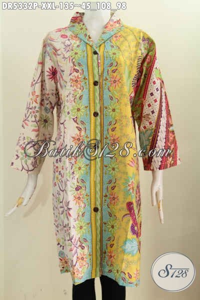 Sedia Baju Batik Istimewa Untuk Wanita Gemuk Harga Murmer, Baju Batik Jumbo Model Dress Kerah Langsung Motif Elegan Proses Printing Harga 135K [DR5332P-XXL]