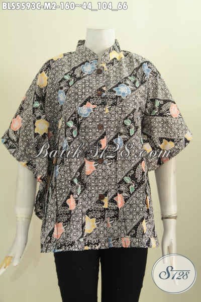 Sedia Baju Batik Keren Motif Bagus Buatan Solo Asli, Produk Blus Batik Model Kipas Kerah Shanghai Proses Cap Harga 160 Ribu [BLS5593C-M]