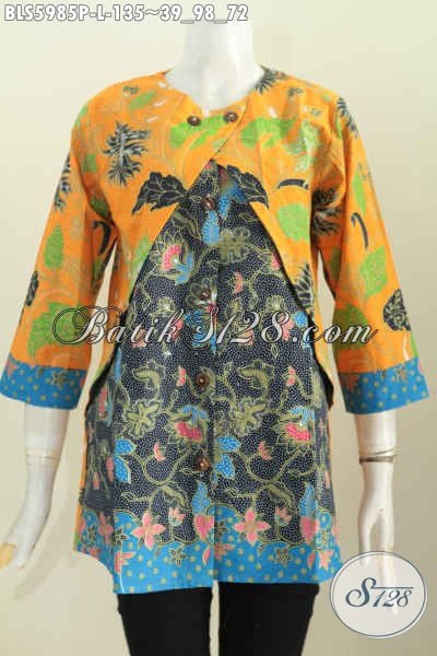 Sedia Baju Batik Keren Nan Istimewa, Pusat Busana Batik Jawa Etnik Dual Motif Kombinasi Rompi Proses Print Harga 135K [BLS5985P-L]