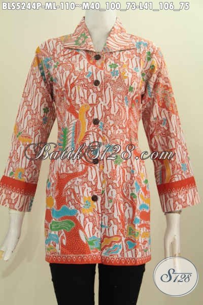 Sedia Baju Batik Modern Classic Nan Istimewa, Pakaian Batik Kerah Kotak Wanita Muda Dan Dewasa Bahan Halus Warna Cerah Proses Printing, Pas Buat Kerja [BLS5244P-M , L]