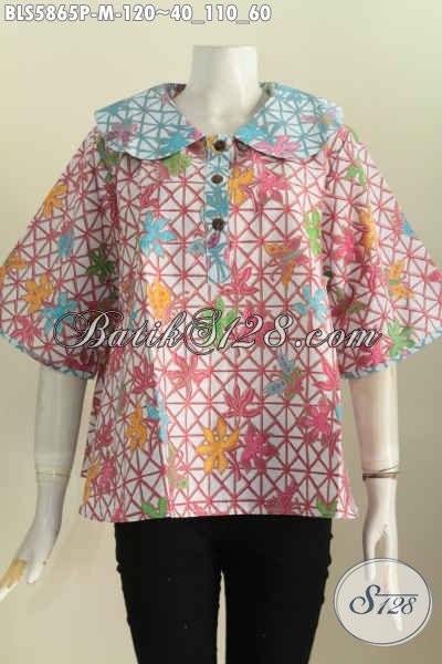 Sedia Baju Batik Modis, Busana Batik Solo Untuk Wanita Karir Tampil Gaya Dan Mempesona Proses Printing Mode Kerah Bulat [BLS5865P-M]