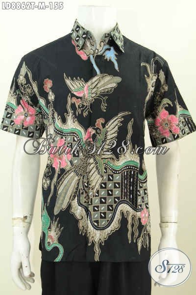 Sedia Baju Batik Pria Anak Muda, Kemeja Lengan Pendek Halus Buatan Solo Asli Proses Tulis Bahan Adem Nyaman Untuk Kerja [LD8862T-M]