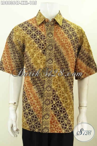Sedia Baju Batik Pria Big Size Lengan Pendek Motif Bagus Bahan Adem Proses Cap Tulis Untuk Kerja Dan Acara Formal Tampil Beda [LD8836CT-XXL]