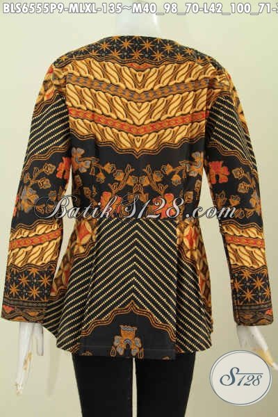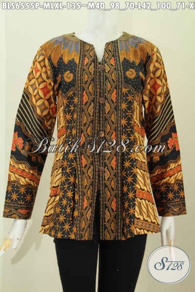 Sedia Baju Batik Solo Masa Kini, Produk Blus Batik Lengan Panjang Tanpa Krah Motif Klasik Proses Printing Hanya 135K [BLS6555P-M , L , XL]