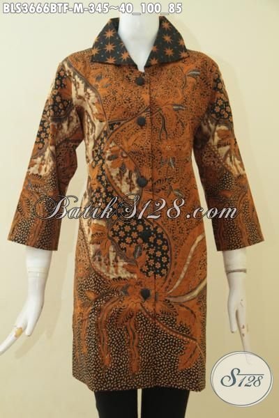 Sedia Baju Batik Untuk Ke Kantora Dan Acara Formal, Busana Blus Elegan Bahan Halus Kombinasi Tulis Motif Mewah, Pakaian Batik Jwa Terkini Daleman Full Furing [BLS3666BTF-M]
