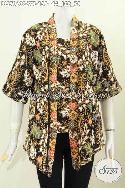 Sedia Baju Blus 3L Spesial Untuk Wanita Gemuk, Hadir Dengan Model Kutubaru Bahan Halus Motif Mewah Proses Cap Harga 165K [BLS7090C-XXL]
