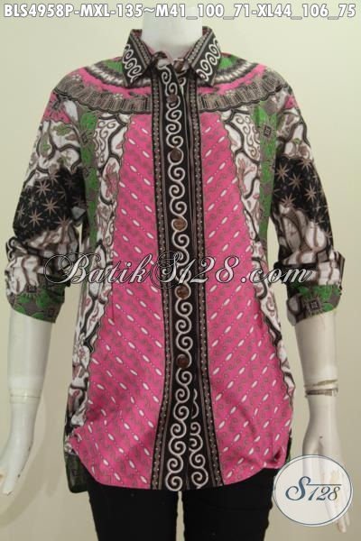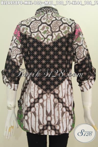 Sedia Baju Blus Batik Online Untuk Wanita Muda Dan Dewasa, Baju Batik Solo Klasik Desain Formal Lengan 7/8 Motif Sinaran Bahan Adem Asli Dari Solo [BLS4958P-M , XL]