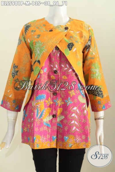 Sedia Baju Blus Lengan Panjang Kombinasi Kuning Dan Merah Jambu, Baju Batik Kombinasi Rompi Untuk Kerja Dan Ke Pesta [BLS5981P-M]