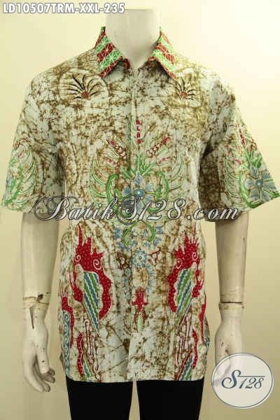 Sedia Baju Kemeja Batik Solo Lengan Pendek Tulis Remekan, Pakaian Batik Modis Terbaru Untuk Pria Gemuk Terlihat Tampan Mempesona [LD10507TRM-XXL]