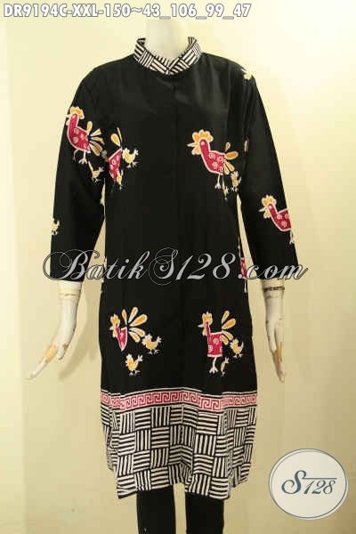 Sedia Batik Dress Istimewa Buatan Solo Asli, Dress Batik Modern Warna Elegan Berpadu Motif Unik Jenis Cap, Bisa Untuk Kerja Dan Kondangan [DR9194C-XXL]