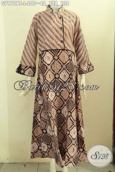 Sedia Batik Gamis Online, Busana Batik Syar’i Wanita Muslimah Krah Shanghai Kancing Samping Nan Modis [G7970BT-L]
