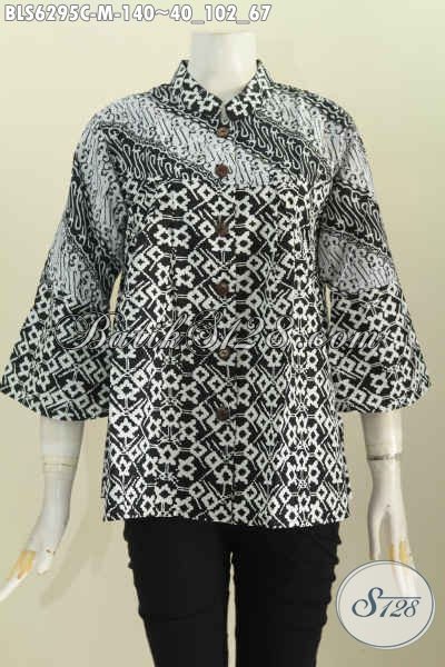 Sedia Batik Kwalitas Istimewa Berbahan Halus Model Kerah Shanghai Monokrom Motif Bagus Proses Cap Tampil Istimewa [BLS6295C-M]