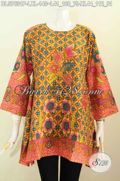 Sedia Blus Batik Kerja Keren, Baju Batik Model Kotak Motif Bagus Proses Printing, Penampilan Makin Trendy Hanya 140K [BLS7631P-L , XL]