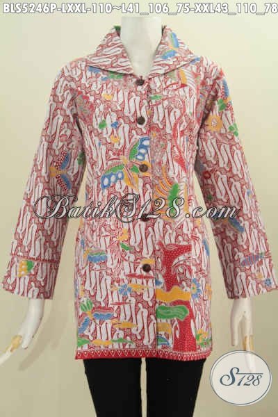 Sedia Busana Batik Bagus Buat Wanita Modern, Pakaian Batik Keren Dan Elegan Kerah Kotak Motif Berkelas Proses Printing Hanya 110 Ribu [BLS5246P-XXL]