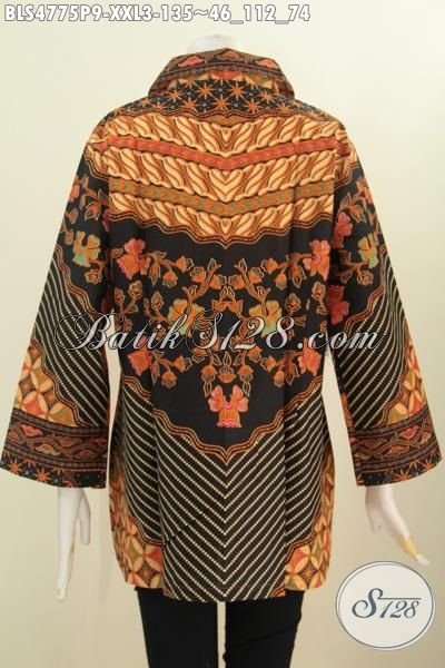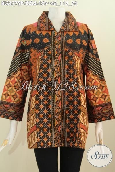 Sedia Busana Batik Blus Kerah Kotak 3L, Produk Pakaian Batik Perempuan Spesial Untuk Yang Berbadan Gemuk, Baju Batik ELegan Motif Sinaran Proses Printing Harga 135K, Modis Buat Ke Kantor [BLS4775P-XXL]