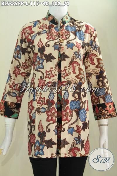 Sedia Busana Batik Blus Pias Dua Warna Kwalitas Halus Motif Mewah Proses Printing, Produk Baju Baju Istimewa Buatan Solo Untuk Kerja Dan Acara Formal [BLS3823P-L]
