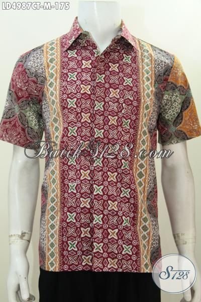Sedia Busana Batik Cowok Ukuran Medium Buat Jalan-Jalan, Kemeja Batik Cap Tulis Motif Kombinasi Trend Mode Jaman Sekarang [LD4987CT-M]