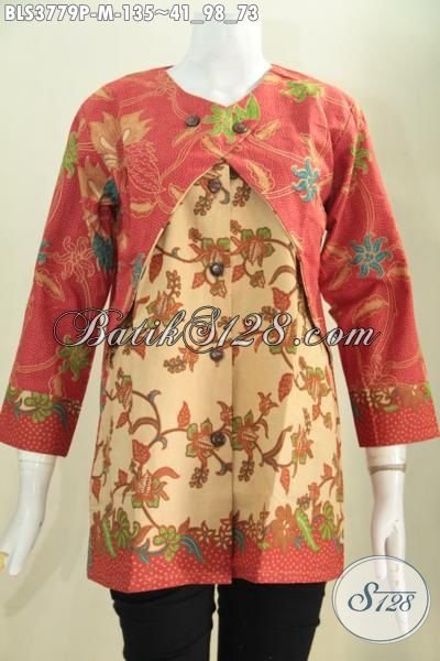 Sedia Busana Batik Jawa Halus Proses Print Motif Bagus Kwalitas Istimewa, Blus Batik Model Kombinasi Balero Trend Mode Masa Kini Buat Wanita Muda Tampil Anggun [BLS3779P-M]