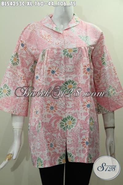 Sedia Busana Batik Jawa Model Kerah Langsung Buat Wanita Karir, Produk Baju Batik Modis Warna Pastel Kwalitas Bagus Desain Mewah Harga Murah Proses Cap [BLS4253C-XL]
