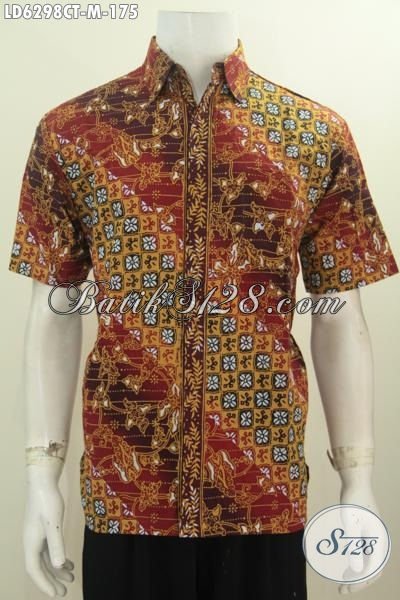 Sedia Busana Batik Modis Dan Elegan Model Lengan Pendek, Pakaian Batik Motif Bagus Bahan Adem Proses Cap Tulis UntukPenampilan Lebih Istimewa [LD6298CT-M]