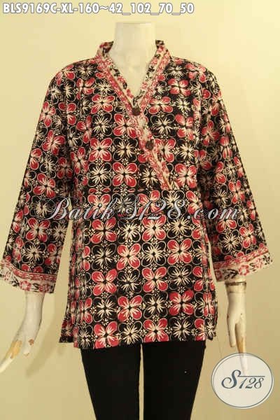 Sedia Busana Batik Wanita Modern Untuk Kerja Kantor Desain Bagus Dan Berkelas, Pakaian Batik Blouse Solo Modis Penampilan Lebih Mempesona, Cocok Juga Untuk Kondangan [BLS9169C-XL]