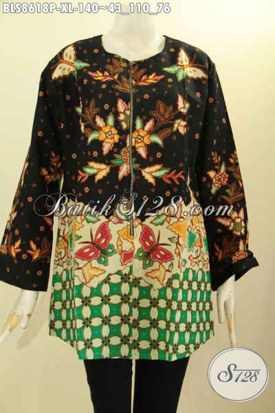 Sedia Busana Kemeja Batik Blouse Atasan Wanita Model Resleting Depan Lengan Panjang Tanpa Krah, Bahan Adem Motif Bagus Pakai Kantong Paspol Kanan Kiri Di Pinggang Harg 140K [BLS8618P-XL]