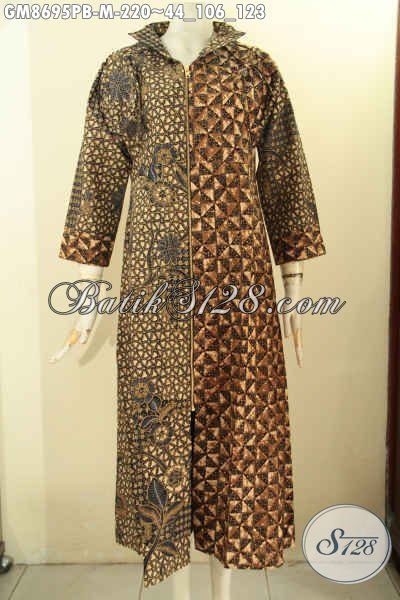 Sedia Busana Muslim Buat Cewek, Gamis Batik Elegan Motif Kombinasi Bahan Halus Proses Printing Cabut, Pakaian Batik Berkelas Tampil Anggun Menawan [GM8695PB-M]