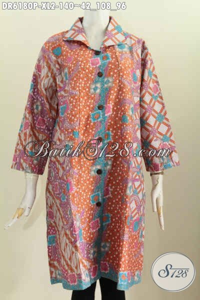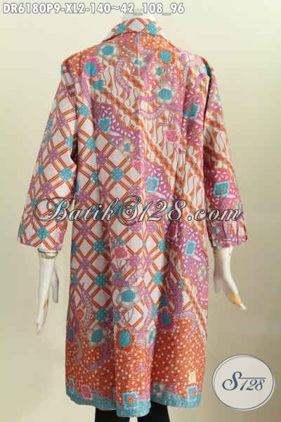 Sedia Dress Batik Modis, Baju Batik Solo Istimewa, Pakaian Batik Kerah Kotak Baut Wanita Untuk Terlihat Gaya Dan Mempesona [DR6180P-XL]