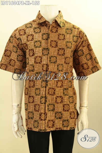 Sedia Kemeja Batik Kerja Nan Elegan, Busana Batik Solo Terbaru Kwalitas Istimewa Model Lengan Pendek Motif Tren Masa Kini Nan Berkelas Proses Printing Cabut, Bikin Pria Terlihat Menawan [LD11604PB-XL]
