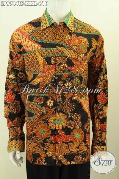 Sedia Kemeja Batik Mewah Super Jumbo, Pakaian Batik Lengan Panjang Full Furing 4L Bahan Halus Motif Elegan Harga 610K [LP9744TF-XXXL]