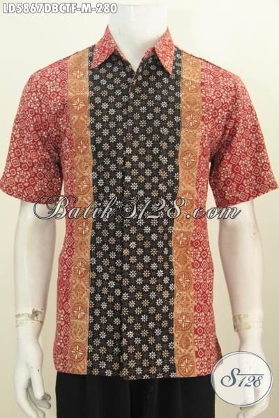 Sedia Kemeja Batik Premium Buatan Solo Proses Cap Tulis, Baju Batik Modis Berkelas Bahan Adem Kwalitas Istimewa Model Lengan Pendek Bahan Dolby Pake Furing, Cowok Terlihat Keren Dan Tampan Maksimal [LD5867DBCTF-M]