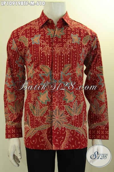 Sedia Kemeja Batik Premium Warna Merah, Busana Batik Mewah Tulis Asli Motif Berkelas Lengan Panjang Full Furing Penampilan Macho Dan Tampan [LP10919TF-M]