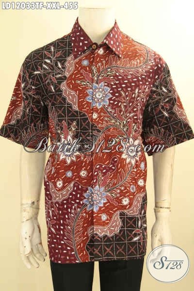 Sedia Kemeja Batik Pria Big Size, Baju Batik Tulis Lengan Pendek Mewah Pakai Furing Motif Terbaru Spesial Untuk Pria Gemuk Tampil Berkelas [LD12033TF-XXL]